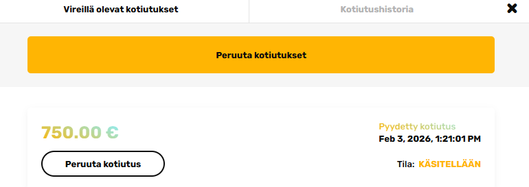 Kotiutuskasino ei anna minulle rahoja, tein kotiutuksen 50 tuntia sitten, kun voitin 100% bonuksesta 750 euroa, kun kyselen aspasta että miksi koituts ei etene he vastaavat että pitää tehdä jotain tarkastuksia, mutta eivät kerro mitään muuta.